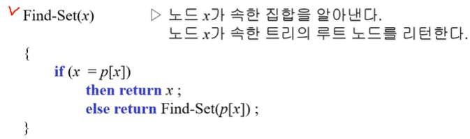 Find-Set(x) : 원소 x를 가지고 있는 집합을 알아낸다.