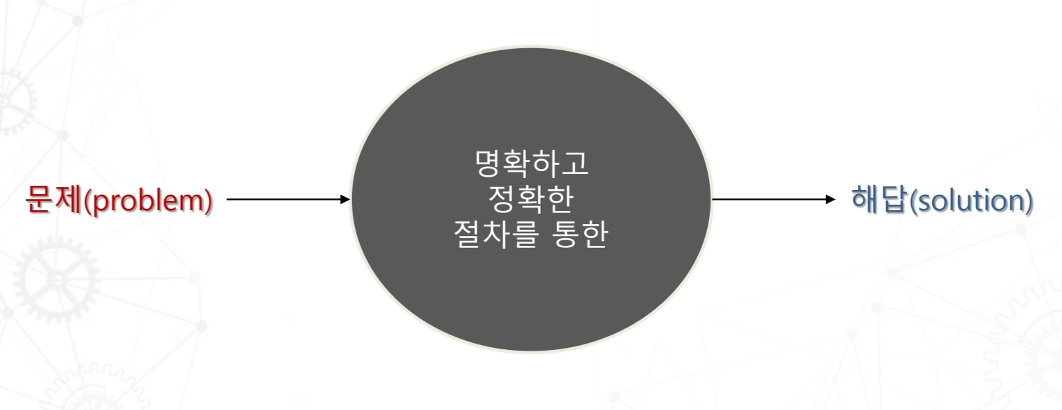 - 어떤 문제를 풀기 위한 유한한 절차와 방법