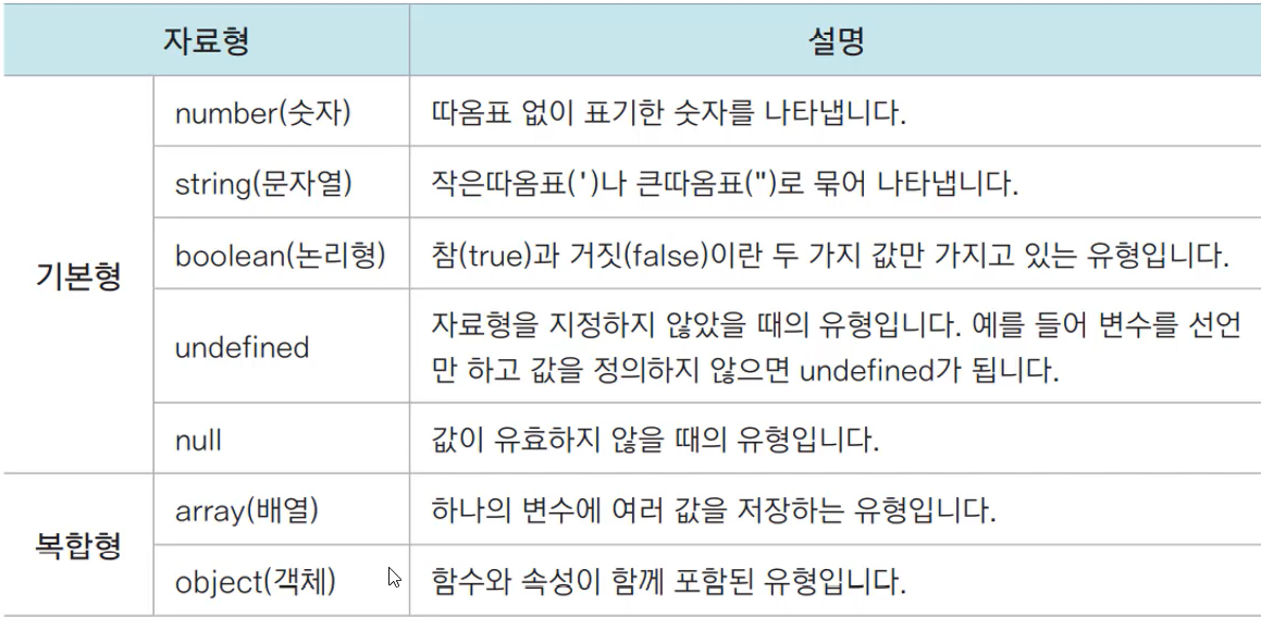 변수 앞에 typeof를 붙이면 변수의 자료형이 나온다.